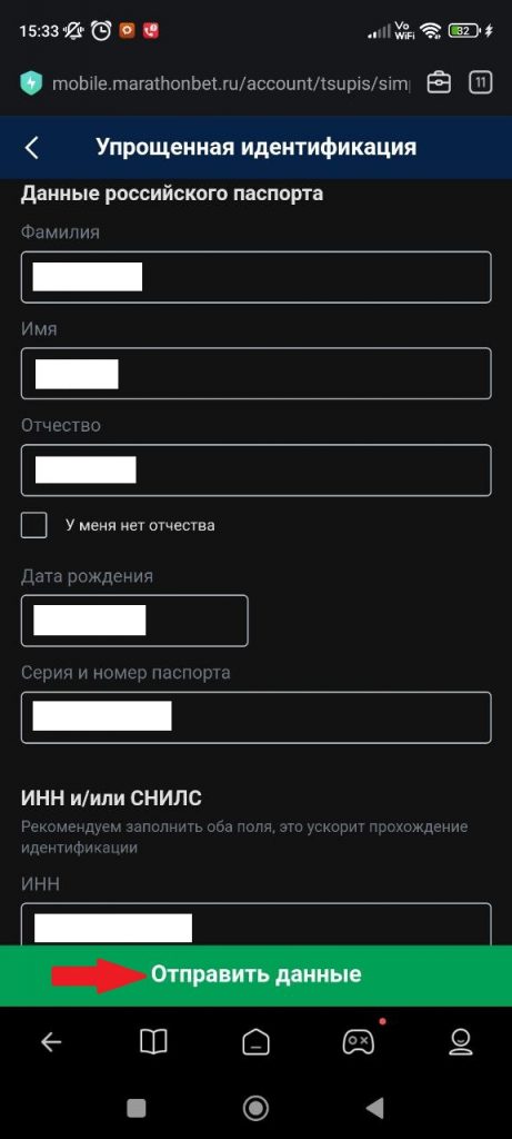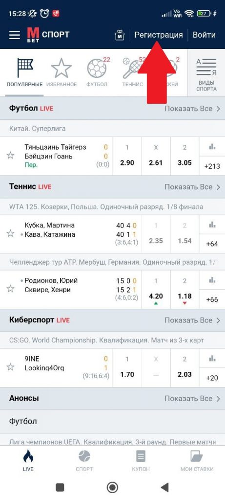 Для получения приветственного бонуса при регистрации в «МарафонБет»: