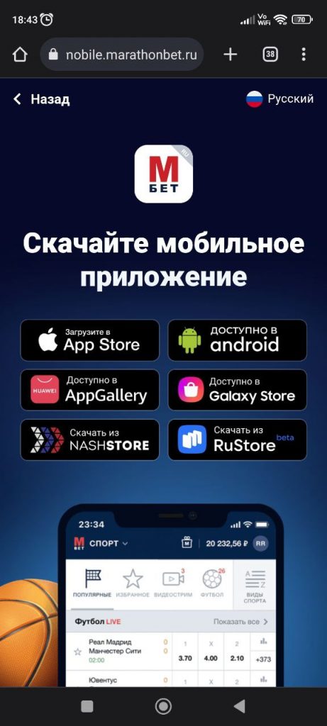 - Скачать мобильное приложение Марафон на свой телефон.