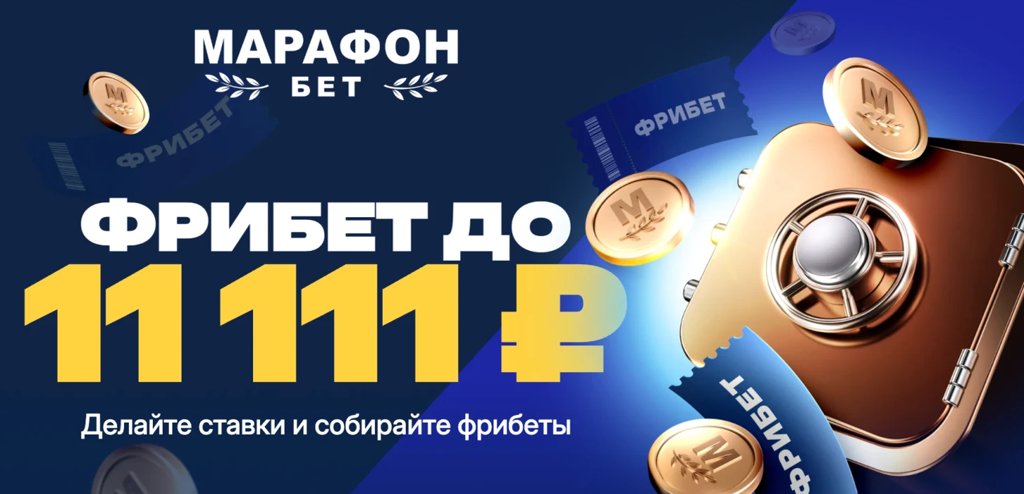 Фрибет до 11 111 ₽ за регистрацию и первые ставки в БК «Марафон»