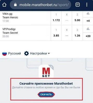 Учитывайте, что скачать мобильное приложение БК Марафон на Android через Google Play – не представляется возможным, поскольку политика онлайн-магазина бесплатных приложений запрещает распространение мобильных программ, которые предполагают азартную игру на реальные деньги. С официального сайта букмекерской конторы Марафон мобильная версия на телефон для Android загружается сразу.