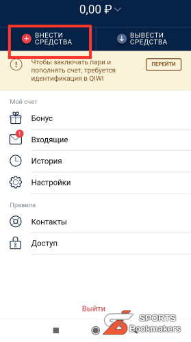 - Нажмите на вкладку «внести средства»;